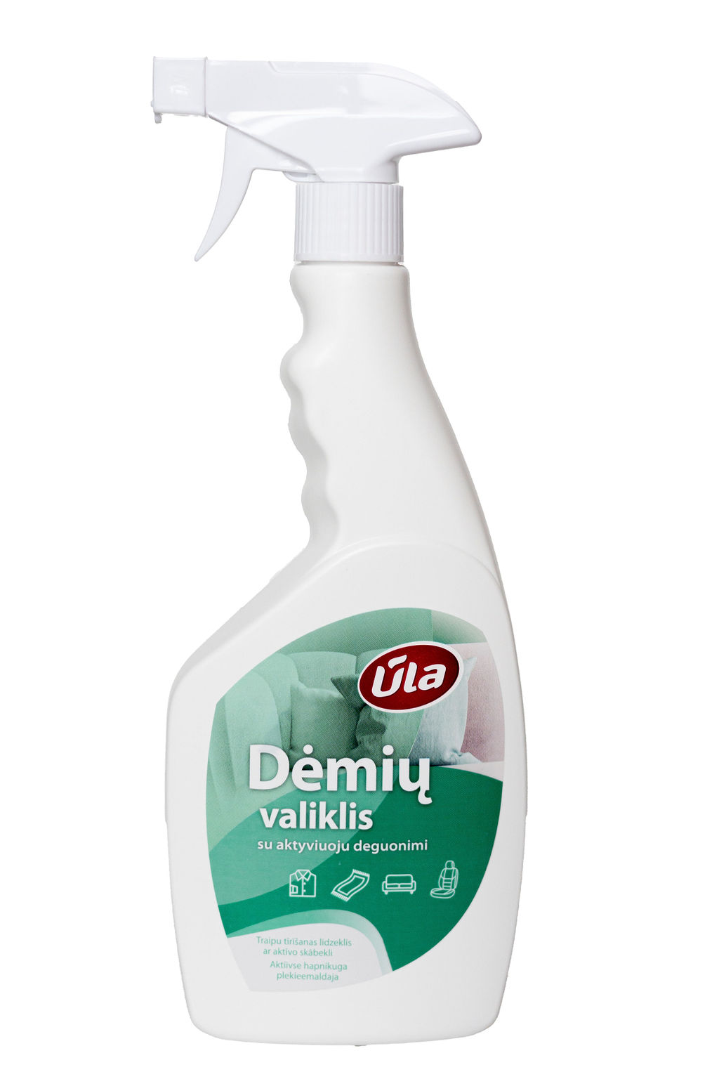 DĖMIŲ VALIKLIS ŪLA SU AKTYVIUOJU DEGUONIMI 0,5 L PASKIRTIS: efektyviai pašalina net sunkiai išplaunamas ir įsisenėjusias dėmes, tokias kaip raudonojo vyno, arbatos, kavos, žolės, purvo ir kitas. Tinka valyti baldų minkštąsias dalis, automobilių salonus ir įvairias kilimines dangas. Jame nėra chloro, dėmės valomos dėka sudėtyje esančio aktyviojo deguonies. Švelni dėmių šalinimo priemonė atgaivina ir išsaugo spalvas valant daugybę kartų.