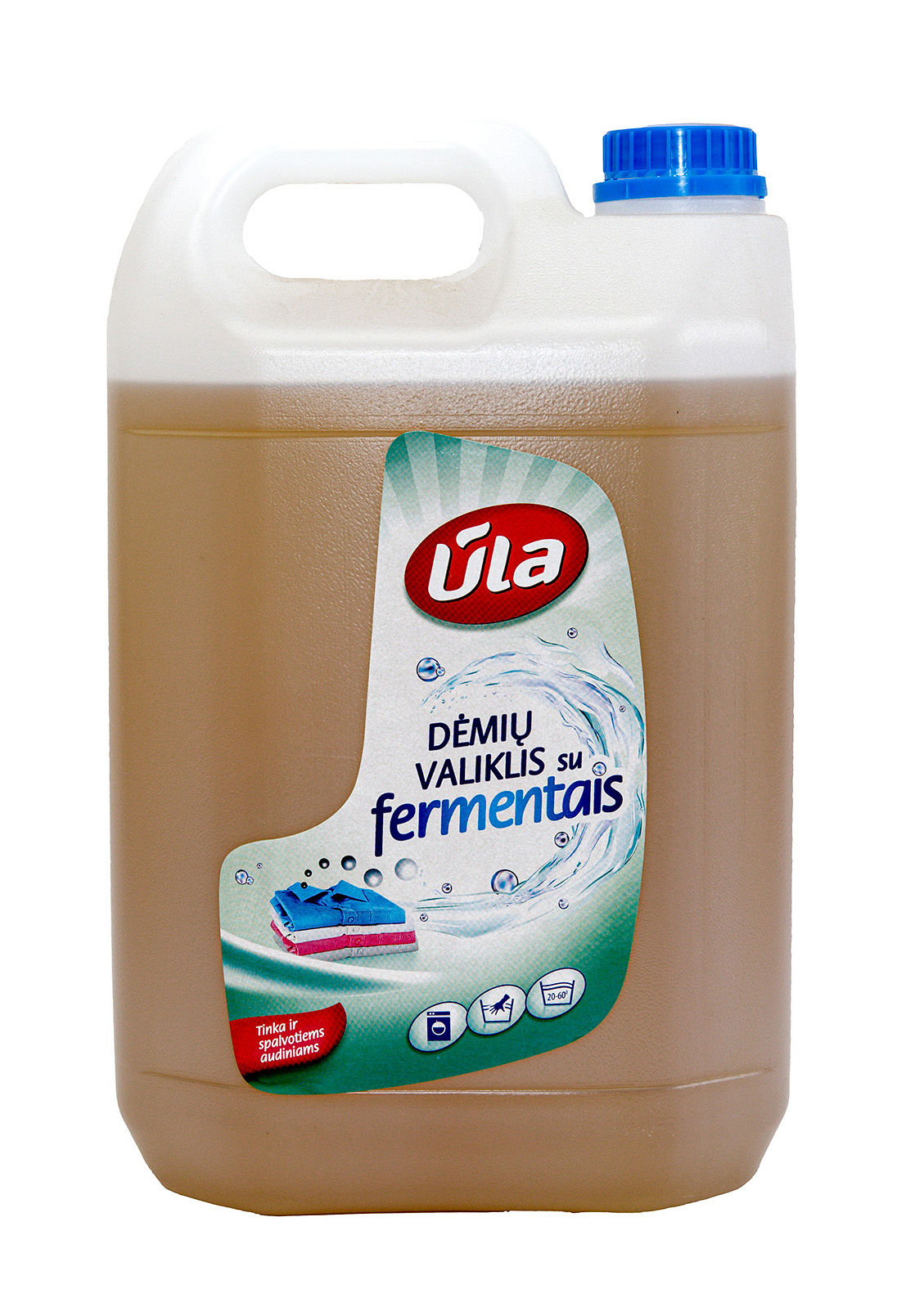 DĖMIŲ VALIKLIS ŪLA SU FERMENTAIS 5 L PASKIRTIS: Dėmių valiklis „Ūla“ praturtintas fermentais ir natūralia tulžimi, skirtas valyti baltyminės, krakmolinės ir riebalinės kilmės dėmes. Pašalina dėmes iš visų audinių. Vilnos, sintetinius ir ryškių spalvų audinius būtina pirmiausia išbandyti mažiau matomoje vietoje ar neblukina.