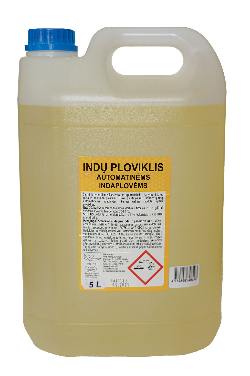 INDŲ PLOVIKLIS AUTOMATINĖMS INDAPLOVĖMS 5 L PASKIRTIS: plauti įvairius indus visų tipų automatinėmis indaplovėmis, kuriose galima naudoti skystus ploviklius. Geriausias nuplovimo efektas pasiekiamas naudojant kartu su indų nuskalautoju automatinėms indaplovėms. Galima naudoti puodams ir keptuvėms plauti.