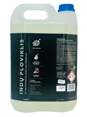 PASKIRTIS: Tik profesionaliesiems naudotojams. Plauti ir dezinfekuoti maisto ruošimo, transportavimo, laikymo ir naudojimo įrangai, talpykloms, naudojimo priemonėms ir paviršiams. Negali tiesiogiai liestis su maistu. SUDĖTIS: Didecildimetilamonio chloridas, CAS Nr. 7173-51-5, EB Nr. 230-525-2: 2,0 %, alkil(C12-14)dimetil (etilbenzil) amonio chloridas, CAS Nr. 85409-23-0, EB Nr. 287-090-7, 0,04 %. Sudėtyje yra nejoninių paviršinio aktyvumo medžiagų, < 15 %. NAUDOJIMAS: Indų ploviklis su dezinfekuojančiais priedais skirtas indams, įrenginiams iš nerūdijančio plieno, plastikinianms ir keraminiams paviršiams mėsos, žuvies, pieno, alaus ir kitose maisto pramonės įmonėse, viešojo maitinimo objektuose plauti ir dezinfekuoti rankiniu būdu. Priklausomai nuo paviršiaus užterštumo, naudojami 1,0 – 3,0 % darbiniai tirpalai (100-300 ml produkto 10 l vandens). Paviršius plauti bei dezinfekuoti 1,0-3,0 % darbiniais 40 - 50 ° temperatūros tirpalais šepečiu, šluoste arba kempine. Ekspozicijos laikas, priklausomai nuo darbinio tirpalo koncentracijos, temperatūros ir užterštumo laipsnio, 5-15 min. Esant fungicidiniam užterštumui ekspozicijos laikas prailginamas iki 15-30 min. Po dezinfekcijos visus paviršius ir įrenginius gerai nuskalauti geriamuoju vandeniu. SAUGA: Pavojinga. Dirgina odą. Smarkiai pažeidžia akis. Kenksminga vandens organizmams, sukelia ilgalaikius pakitimus. Biocidinius produktus naudokite saugiai. Prieš naudodami visuomet perskaitykite etiketę ir informaciją apie produktą. PATEKUS Į AKIS: Kelias minutes atsargiai plauti vandeniu. Išimti kontaktinius lęšius, jeigu jie yra ir jeigu lengvai galima tai padaryti. Toliau plauti akis. Nedelsiant skambinti į Apsinuodijimų kontrolės ir informacijos biurą arba kreiptis į gydytoją. Mūvėti apsaugines pirštines. PATEKUS ANT ODOS: Nuplauti dideliu kiekiu muilo ir vandens. Jeigu sudirginama oda: kreiptis į gydytoją. Turinį / talpyklą šalinti į atliekas pagal nacionalinius reikalavimus. Saugoti, kad nepatektų į aplinką.