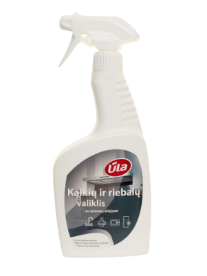 KALKIŲ IR RIEBALŲ VALIKLIS ŪLA 0,5 L PASKIRTIS: Tinka valyti kalkių nuosėdas ir rūdis nuo kriauklių ir čiaupų, dušo kabinų, veidrodžių ir riebalus nuo viryklių, ventiliacijos grotelių ir už virtuvės prietaisų susikaupusias apnašas. Sudėtyje yra panaudotas polimeras, kuris palengvina sekantį valymą, pagreitina džiūvimą, palengvina nuplovimą, nelieka dryžių, suteikia spindesį. NAUDOJIMAS: Pasukite purkštuką į purškimo padėtį. Purkškite tiesiai ant valomo paviršiaus ir tolygiai paskleiskite valiklį kempinėle. Palaukite keletą minučių (bet ne daugiau 5 min.) ir nuplaukite vandeniu. Jeigu reikia, pakartokite dar kartą. SUDĖTIS: < 5 % nejoninių aktyviųjų paviršiaus medžiagų, organinė rūgštis, kvapnioji medžiaga, Linalool. SAUGA: Pavojinga. Sudėtyje yra Fosforo rūgšties ir 2-hidroksipropano rūgšties. Smarkiai nudegina odą ir pažeidžia akis. Laikyti vaikams neprieinamoje vietoje. Mūvėti apsaugines pirštines/ naudoti akių (veido) apsaugos priemones. PATEKUS Į AKIS: Kelias minutes atsargiai plauti vandeniu. Išimti kontaktinius lęšius, jeigu jie yra ir jeigu lengvai galima tai padaryti. Toliau plauti akis. PATEKUS ANT ODOS (arba plaukų): nedelsiant nuvilkti visus užterštus drabužius. Odą nuplauti vandeniu. Nedelsiant skambinti į APSINUODIJIMŲ KONTROLĖS IR INFORMACIJOS BIURĄ arba kreiptis į gydytoją. Laikyti užrakintą. Turinį/talpyklą šalinti į atliekas pagal nacionalinius reikalavimus. LAIKYMAS: Kambario temperatūroje, sausoje patalpoje, originalioje gamintojo taroje. Tinkamumo naudoti terminas nurodytas ant pakuotės.