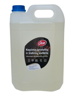 KEPIMO GROTELIŲ IR ŽIDINIŲ VALIKLIS ŪLA 5 L PASKIRTIS: Universalus, greito veikimo valiklis efektyviai pašalina suodžius, riebalus ir nuodegas nuo plastiko, stiklo, chromuotų ir nerūdijančio plieno paviršių. Tinka valyti kepamąsias groteles, židinius ir jų stiklus, orkaites, virykles.