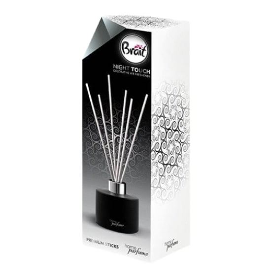Brait „Night Touch“ kvapios lazdelės – 100 ml, turtingos medienos ir vanilės kvapo kompozicija. Sukuria rafinuotą ir šiltą atmosferą be aerozolio.