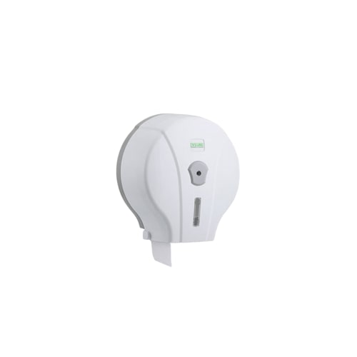 LAIKIKLIS TUALETINIAM POPIERIUI (MINI JUMBO) Laikiklis Mini Jumbo skirtas tualetiniam popieriui, kurio ritinys yra didesnis už standartinį, todėl puikiai tinka didelio lankomumo vietoms, tokioms kaip viešieji tualetai, biurai ar restoranai. Laikiklis sukurtas taip, kad būtų lengva naudoti ir keisti popierių, o uždaromas dizainas apsaugo tualetinį popierių nuo drėgmės ir nešvarumų.