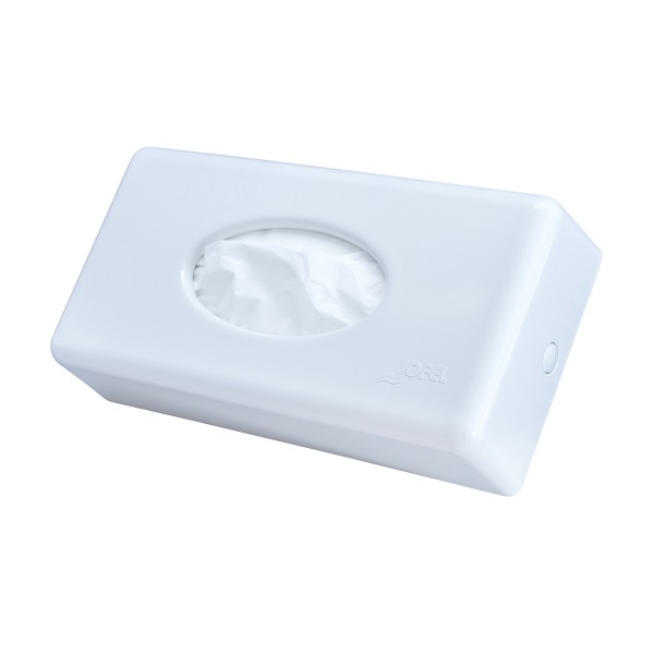 Baltas plastikinis laikiklis, skirtas veido servetėlėms. Tinka naudoti ant stalo ar sienos. Kompaktiško dizaino, užtikrina patogų servetėlių paėmimą. Idealiai tinka viešbučiams, biurams ar namų naudojimui.