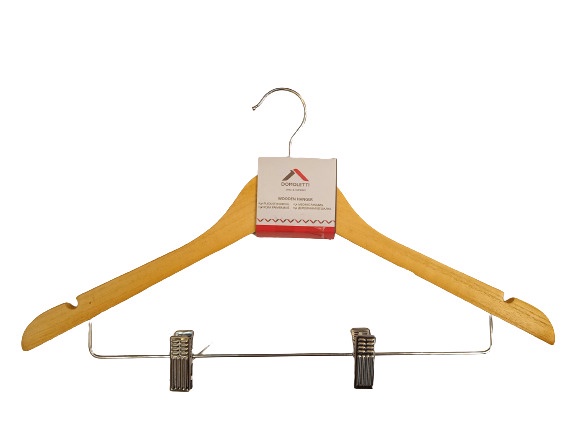 Medinė pakaba su klipsais Tvirta ir elegantiška medinė pakaba su metaliniais klipsais skirta patogiam kelnių, sijonų ar kitų drabužių laikymui. Natūrali mediena suteikia pakabai estetišką išvaizdą ir ilgaamžiškumą, o tvirti klipsai patikimai laiko audinius jų nepažeisdami. Tai praktiškas sprendimas, padedantis palaikyti tvarką spintoje ir užtikrinantis, kad drabužiai išliktų nepriekaištingos formos.