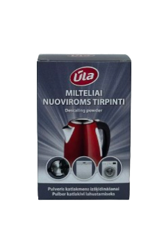 PASKIRTIS: tirpinti nuoviras iš emaliuotų ir metalinių indų, plastikinių virdulių, kaitinimo elementų. Balti kristaliniai milteliai lengvai tirpstantys verdančiame vandenyje. SUDĖTIS : neorganinė rūgštis. NAUDOJIMAS : Milteliai nuoviroms tirpinti iš emaliuotų ir metalinių indų, plastikinių virdulių, kaitinimo elementų. Tirpalo paruošimas: Virdulius valyti vienam litrui vandens įpilti 50 g (4 šaukštus) miltelių. Tirpalą supilti į valomą indą (užpilti ne daugiau kaip 2/3 indo tūrio) ir virinti 10 - 15 min. Storą nuovirų sluoksnį tirpinti užvirinant paruoštą tirpalą pakartotinai 2 - 3 kartus. Ištirpinus nuoviras, indus gerai išplauti, įpilti švaraus vandens ir dar kartą užvirinti. Automatines skalbimo mašinas, valyti vienam litrui vandens įpilti 50 g miltelių, indaploves valyti vienam litrui vandens įpilti 25 g miltelių Tirpalą supilti į tuščią mašiną ir įjungti programą iki 60 °C, plauti režimu be pirminio mirkymo. Esant reikalui veiksmą pakartoti. Rekomenduojama valyti ne rečiau kaip kartą per mėnesį. SAUGA : Atsargiai. Sukelia smarkų akių dirginimą. Dirgina odą. Kenksminga vandens organizmams, sukelia ilgalaikius pakitimus. Laikyti vaikams neprieinamoje vietoje. Saugoti, kad nepatektų į aplinką. PATEKUS ANT ODOS: Nuplauti dideliu kiekiu muilo ir vandens. PATEKUS Į AKIS: Kelias minutes atsargiai plauti vandeniu. Išimti kontaktinius lęšius, jeigu jie yra ir jeigu lengvai galima tai padaryti. Toliau plauti akis. Jei akių dirginimas nepraeina: kreiptis į gydytoją. Talpyklą šalinti į atliekas pagal nacionalinius reikalavimus.