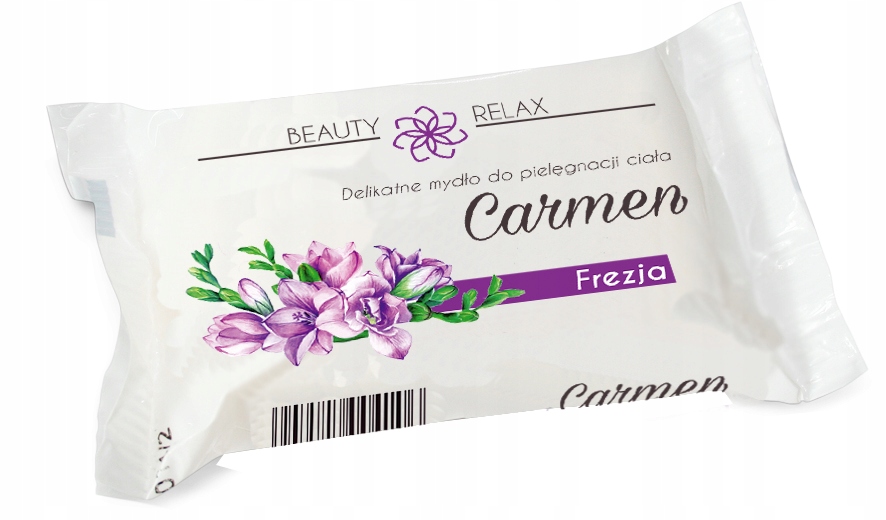 Carmen muilas „Freesia“ – 100 g, su gėlės aromatu, švelnus odai, palieka gaivią ir subtilią pėdų ar rankų dvasią kasdieniam naudojimui.