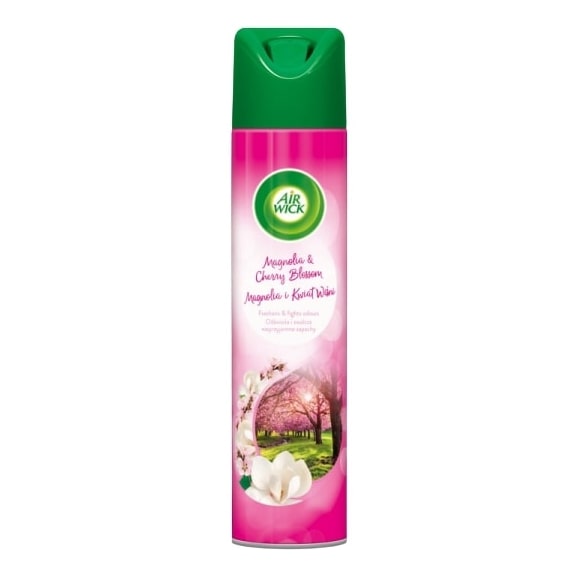 ORO GAIVIKLIS AIRWICK MAGNOLIA & CHERRY BLOSSOM Šis „Air Wick“ oro gaiviklis efektyviai pašalina nemalonius kvapus ir suteikia natūralaus, šviežio gėlių aromato, kuriame susilieja magnolijų ir vyšnių žiedų kvapai. Gaiviklis idealiai tinka bet kuriam kambariui, sukuriant gaivią ir malonią atmosferą. Tai aerozolinis purškalas, kurio talpa yra 300 ml, ir jis lengvai naudojamas kasdieniam patalpų gaivinimui