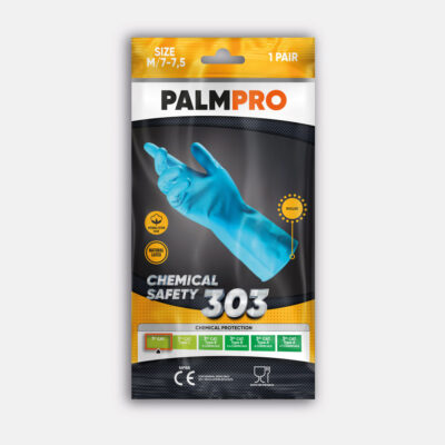 Buitinės porūšinės pirštinės „PalmPro Nova 303“, S dydis (6), mėlynos. Pagamintos iš nitrilo, be pudros, su grublėta tekstūra – suteikia gerą sukibimą, apsaugo rankas nuo cheminių medžiagų, taip pat tinka maisto tvarkymui. Ergonomiškas anatominis siluetas ir patogus fiksavimas rankos apykakle – tinkamos namų, automobilių tvarkymo, laboratorijų užduotims.