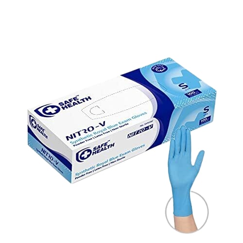 PIRŠTINĖS VIENKARTINĖS NITRO-V BE PUDROS Nitrilo vienkartinės pirštinės, be pudros ir latekso. Šios pirštinės yra mėlynos spalvos, skirtos medicinos tikslams, maisto ruošai, valymo darbams ir grožio sektoriui. Pakuotėje yra 100 vienetų, ir jos pasižymi dideliu elastingumu bei komfortu dėvint ilgą laiką. Šios pirštinės užtikrina papildomą apsaugą nuo alergijų