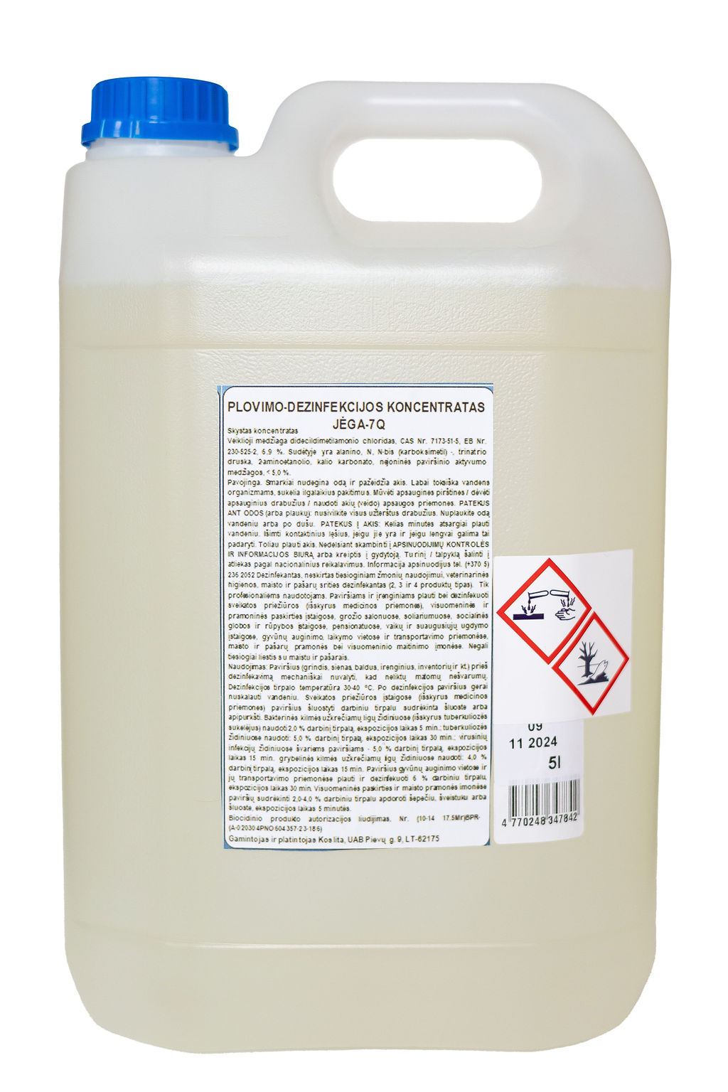 PLOVIMO-DEZINFEKCIJOS KONCENTRATAS JĖGA-7Q 5 L PASKIRTIS: Dezinfekantas, neskirtas tiesioginiam žmonių naudojimui ir maisto srities dezinfekantas (2 ir 4 produktų tipai). Tik profesionaliesiems naudotojams. Paviršiams ir įrenginiams plauti bei dezinfekuoti sveikatos priežiūros ir visuomenines paskirties įstaigose, maisto pramonės bei visuomeninio maitinimo įmonėse. Negali tiesiogiai liestis su maistu. Negali tiesiogiai liestis su maistu. Biocido autorizacijos liudijimo Nr. Nr. (10-14 17.5) BSV-20372 (A-0204PNO603071-18-179) galioja iki 2023-08-22.
