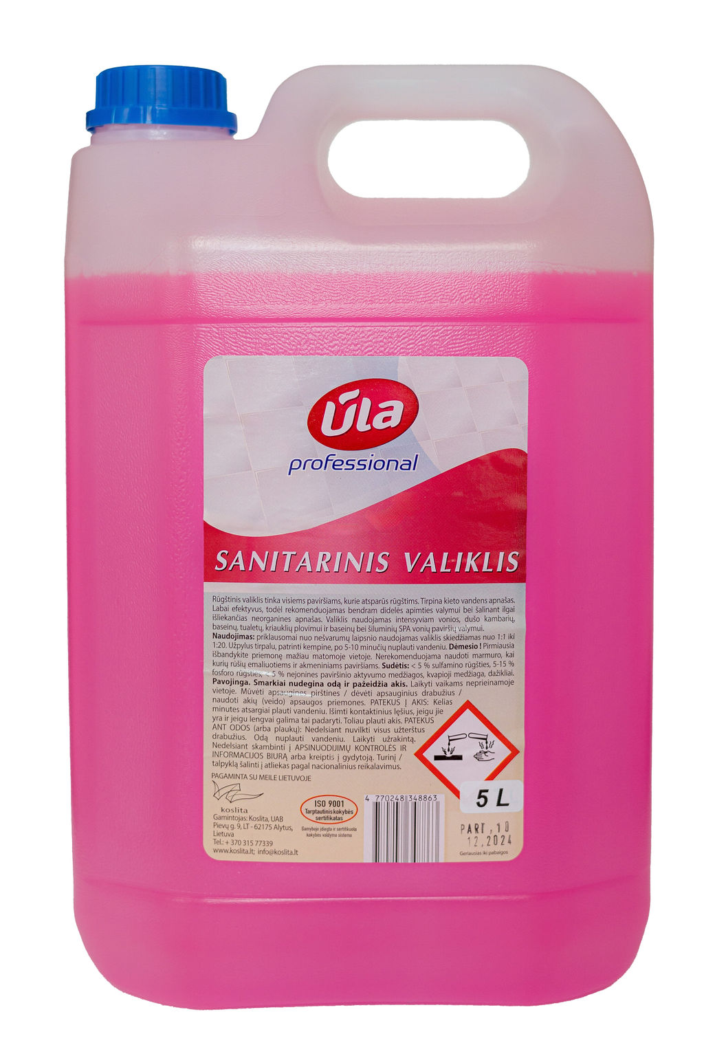 SANITARINIS VALIKLIS ŪLA PROFESSIONAL 5 L PASKIRTIS: Rūgštinis valiklis tinka visiems paviršiams, kurie atsparūs rūgštims. Tirpina kieto vandens apnašas. Labai efektyvus, todėl rekomenduojamas bendram didelės apimties valymui bei šalinant ilgai išliekančias neorganines apnašas. Valiklis naudojamas intensyviam vonios, dušo kambarių, baseinų, tualetų, kriauklių plovimui ir baseinų bei šiluminių SPA vonių paviršių valymui.