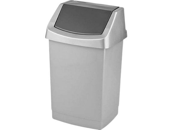 Curver „Click‑It“ šiukšliadėžė – 15 l, sidabro spalvos, metalinė pedalo ir dangčio sistema, matmenys 28 × 23,5 × 43,8 cm. Patogi naudoti virtuvėse ar tualetuose – pedalas lengvai valdomas koja, dangtis tyliai ir sandariai užsidaro, o tvirta plastikinė konstrukcija patvari bei draugiška kasdieniam naudojimui