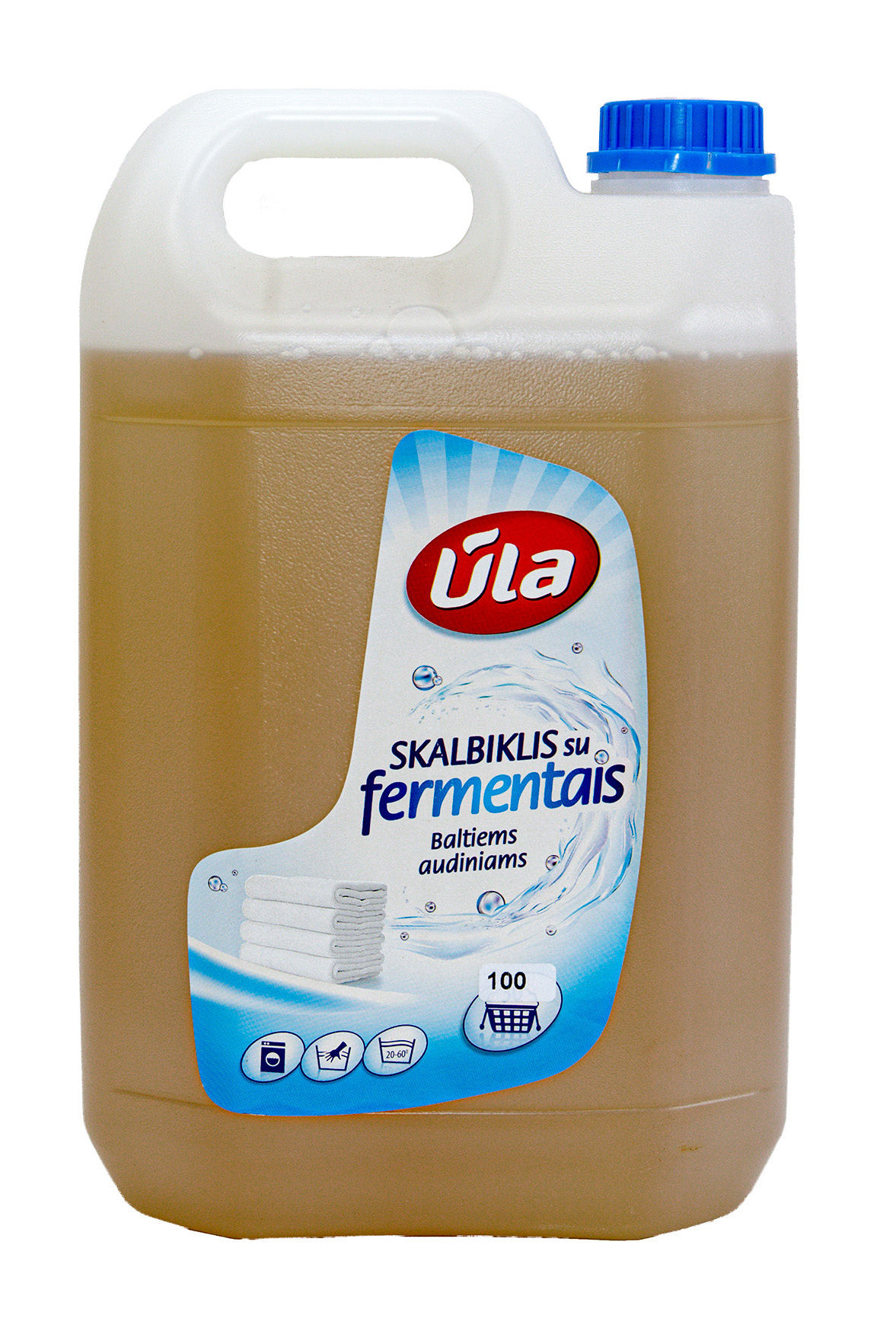 SKALBIKLIS ŪLA SU FERMENTAIS BALTIEMS AUDINIAMS 5 L PASKIRTIS: Skystas skalbiklis „Ūla“ su fermentais skirtas skalbti stipriau užterštiems, dėmėtiems baltiems skalbiniams rankomis ir automatinėmis skalbimo mašinomis. Be fosfatų. Sudėtyje esantys fermentai ir natūralios kilmės tulžis patenka į audinio pluoštą ir tirpina įvairios kilmės dėmes. Specialios medžiagos, esančios skalbiklio sudėtyje paryškina audinio baltumą, saugo nuo pilkėjimo. Skalbiklis „Ūla“ puikiai išskalbs baltus medvilninius, lininius ir visų rūšių sintetinius audinius. Skalbdami vadovaukitės gamintojų rekomendacijomis.SUDĖTIS: 5-15 % anijoninių aktyviųjų paviršiaus medžiagų, < 5 % nejoninių aktyviųjų paviršiaus medžiagų, < 5 % muilo, optiniai balikliai, tulžis, fermentai, konservantas, Benzisothiazolinone, Methylisothiazolinone, Laurylamine Dipropylenediamine, kvapioji medžiaga