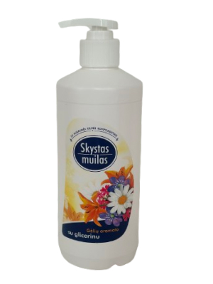 SKYSTAS MUILAS GĖLIŲ AROMATO SU GLICERINU 0,5 L PASKIRTIS: Skirtas plauti rankas maisto pramonės įmonėse, sveikatos priežiūros įstaigose, viešbučiuose...