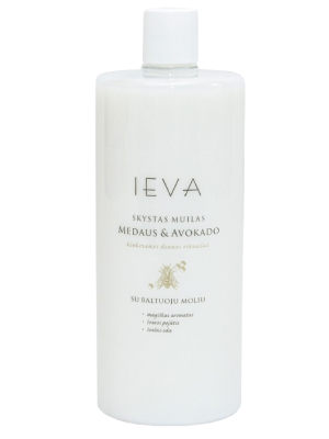 SKYSTAS MUILAS IEVA MEDAUS IR AVOKADO 1 L Švelnus skystas muilas praturtintas švelniais odą puoselėjančiais priedais: baltuoju moliu ir vitaminu E. Baltajame molyje esantis kaolinas absorbuoja riebalų perteklių pašalina, negyvas ląsteles, tonizuoja, atkuria, maitina odą mineralais, ją balina. Vitaminas E drėkina odą, suteikia elastingumo ir lygumo. Be dažiklių. Ingredients: Aqua, Sodium Laureth Sulfate, Sodium Chloride, Glycerin, Cocamidopropyl Betaine, Cocamide DEA, Coco Glucoside, Glyceryl Oleate, Kaolin, Styrene/Acrylates Copolymer, Sodium Lauroyl Glutamate, Tocopheryl Acetate, Citric acid, Parfum, Hexyl Cinnamal, Benzyl Alcohol, Methylchloroisothiazolinone, Methylisothiazolinone.