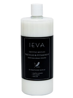 SKYSTAS MUILAS IEVA PAČIULIO IR VITAMINO E 1 L Švelnus skystas muilas praturtintas švelniais odą puoselėjančiais priedais: baltuoju moliu ir vitaminu E. Baltajame molyje esantis kaolinas absorbuoja riebalų perteklių, pašalina negyvas ląsteles, tonizuoja, atkuria, maitina odą mineralais, ją balina. Vitaminas E drėkina odą, suteikia elastingumo ir lygumo. Be dažiklių. Ingredients: Aqua, Sodium Laureth Sulfate, Sodium Chloride, Glycerin, Cocamidopropyl Betaine, Coco Glucoside, Glyceryl Oleate, Cocamide DEA, Kaolin, Styrene/Acrylates Copolymer, Sodium Lauroyl Glutamate, Tocopheryl Acetate, Citric acid, Parfum, Benzyl Alcohol, Methylchloroisothiazolinone, Methylisothiazolinone.