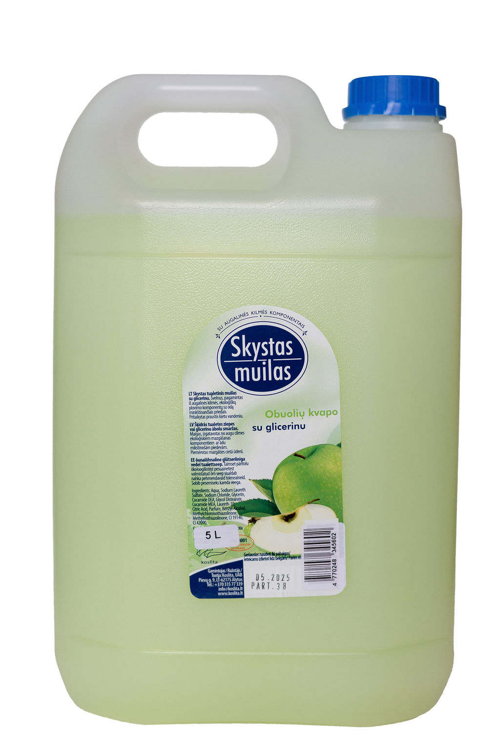 SKYSTAS MUILAS OBUOLIŲ KVAPO SU GLICERINU 5 L PASKIRTIS: Skirtas plauti rankas maisto pramonės įmonėse, sveikatos priežiūros įstaigose, viešbučiuose, ...