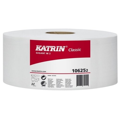 TUALETINIS POPIERIUS KATRIN GIGANT 2 sluoksniai Baltos spalvos. Ritinio ilgis: 340 m. Lapelių kiekis: 2720. Lapelio dydis: 100x125 mm. 6 vnt. pakuotėj...