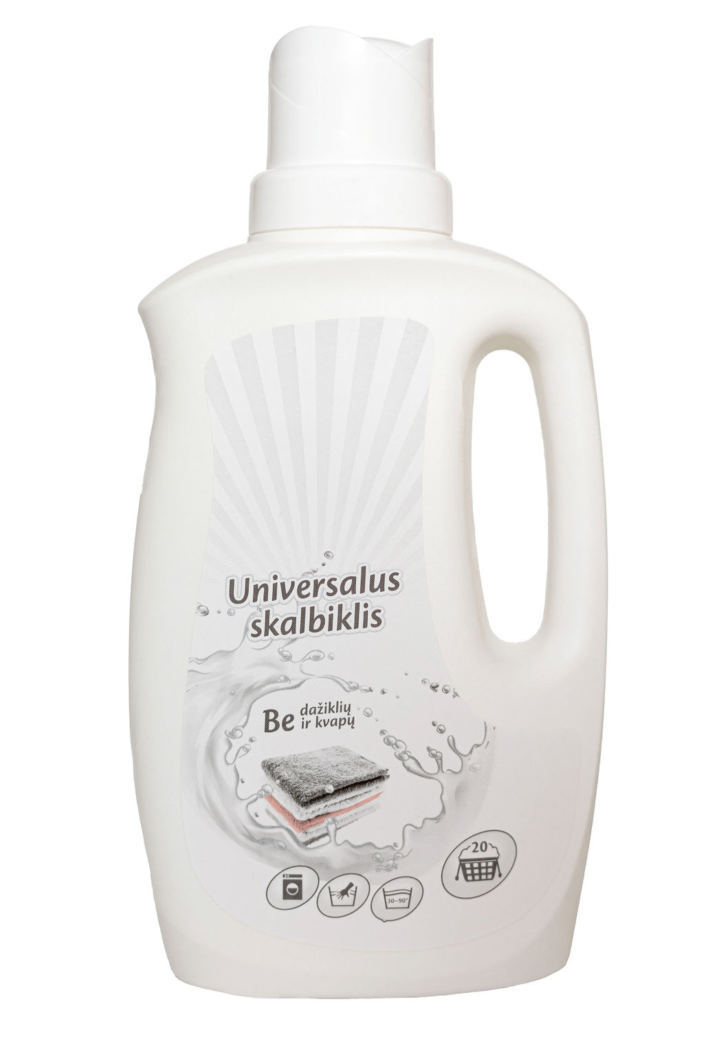 UNIVERSALUS SKALBIKLIS BE DAŽIKLIŲ IR KVAPŲ 1 L PASKIRTIS: Universalus baltų ir spalvotų audinių skalbiklis, skirtas skalbti rankomis ir automatinėmis skalbimo mašinomis. Efektyviai šalina nemalonius kvapus, maisto, purvo dėmes ir kitus nešvarumus. Skalbdami vadovaukitės gamintojo rekomendacijomis. Be dažiklių ir kvapiųjų medžiagų.