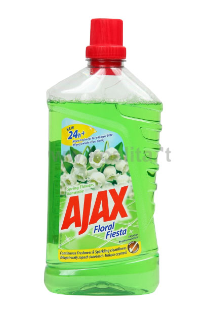Ajax Floral Fiesta yra universalus valiklis, skirtas įvairiems paviršiams, įskaitant grindis, plyteles ir baldus. Valiklis pasižymi unikaliu, oru aktyvinamu kvapu, praturtintu natūraliais gėlių ekstraktais bei eteriniais aliejais. Jis efektyviai šalina nešvarumus ir suteikia ilgalaikį gaivos pojūtį, kuris išlieka iki 24 valandų. Šis valiklis tinka tiek buitinėms, tiek komercinėms patalpoms valyti