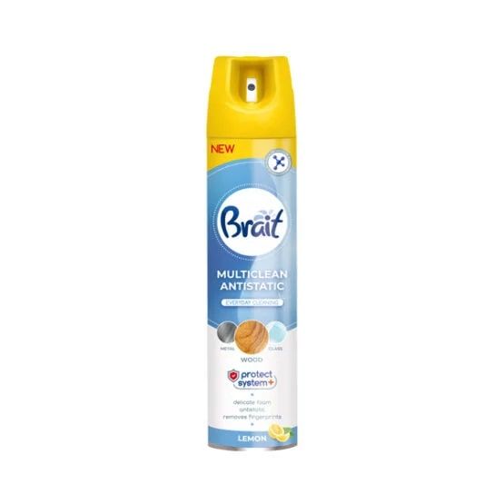 VALIKLIS BALDŲ BRAIT MULTICLEAN Šis valiklis skirtas įvairių paviršių, tokių kaip mediniai, stikliniai, metaliniai ar plastikiniai, valymui. Jis švelniai pašalina dulkes, suteikia antistatinių savybių, apsaugo paviršius nuo įbrėžimų ir dėmių, taip pat sukuria apsauginį sluoksnį, kuris suteikia paviršiui blizgesį. Tai puiki priemonė tiek namų, tiek biuro baldų priežiūrai