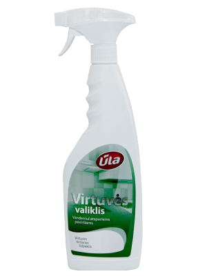 VIRTUVĖS VALIKLIS ŪLA 0,75 L PASKIRTIS: Universalus valiklis vandeniui atspariems paviršiams. Puikiai valo riebalų dėmes, suteikia paviršiams blizgesį. Skleidžia malonų, ilgai išliekantį aromatą namų aplinkoje. Sudėtyje yra panaudotas polimeras, kuris palengvina sekantį valymą, pagreitina džiūvimą, palengvina nuplovimą, nelieka dryžių, suteikia spindesį.