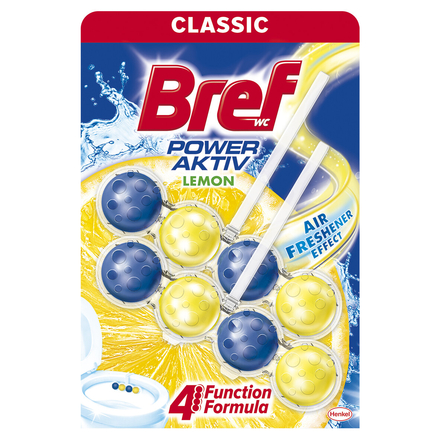 WC gaiviklis Bref Aktiv Lemon, 2× 50 g, su citrinų aromatu. Ne tik neutralizuoja kvapus, bet ir valo – suteikia ilgalaikę švarą....