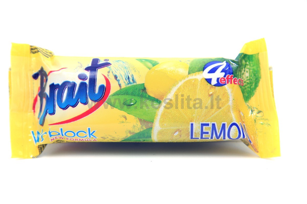 WC MUILIUKAS BRAIT CITRINŲ Šis tualeto muiliukas su citrinų aromatu skirtas tualetų švarai palaikyti. Jis padeda pašalinti nešvarumus, apsaugo nuo kalkių nuosėdų kaupimosi ir neutralizuoja nemalonius kvapus, užtikrindamas ilgalaikį gaivumą. Jis gali būti naudojamas kaip papildymas pakabinamai WC talpyklai arba atskirai, priklausomai nuo poreikio