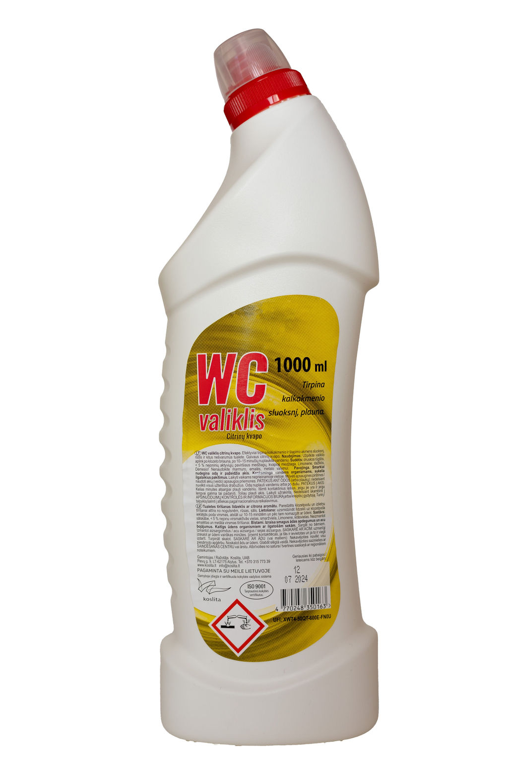 WC VALIKLIS CITRINŲ KVAPO 1 L PASKIRTIS: Efektyviai tirpina kalkakmenio ir šlapimo akmens sluoksnį, rūdis ir kitus nešvarumus tualete. Gaivaus citrinų kvapo.