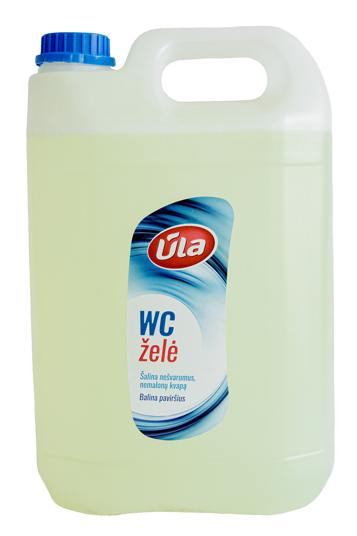 WC ŽELĖ ŪLA SU AKTYVIUOJU CHLORU 5 L SAVYBĖS: Tiršta, koncentruota, nenubėga ir padengia paviršių, gausiai putojanti. Efektyviai plauna unitazus. Sudėtyje esantis aktyvusis chloras balina, naikina nemalonų kvapą. Tinka naudoti sveikatos priežiūros įmonėse, visuomeninės paskirties vietose ir buityje.