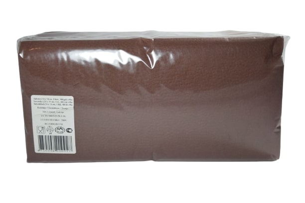SERVETĖLĖS 24X24 TAMSIAI RUDOS Šios viensluoksnės, tamsiai rudos popierinės servetėlės yra elegantiškas pasirinkimas tiek kasdieniniam naudojimui, tiek stilingam stalo dekoravimui. Jos gaminamos iš celiuliozės ir puikiai tinka įvairiems renginiams ar viešojo maitinimo sektoriui. Pakelyje yra 400 vienetų, o servetėlių dydis – 24x24 cm. Ši spalva prideda stalo serviravimui šilumos ir natūralumo