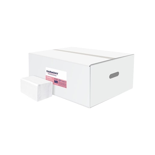 TUALETINIS POPIERIUS LAPELIAIS HARMONY 2 sluoksniai Baltos spalvos, celiuliozė Lapelio dydis: 220x110 mm. Lapelių kiekis: 250.